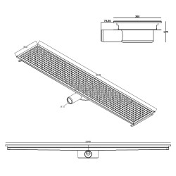 Caniveau de sol en acier inoxydable - 1200x300mm - sortie horizontale Ø70mm