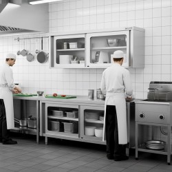 Cette armoire inox central avec portes coulissantes vitrées est un élément incontournable des restaurateurs.