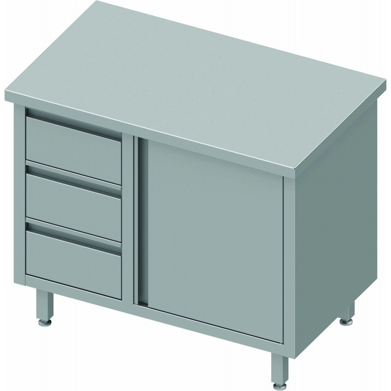 Meuble Bas Inox central - Porte + 3 Tiroirs à Gauche - Gamme 800 - Stalgast