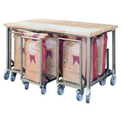 Équipé de roulettes de Ø 125 mm, dont deux avec freins et chape zinguée, il permet de déplacer facilement jusqu’à 4 sacs de farine de 40 kg.