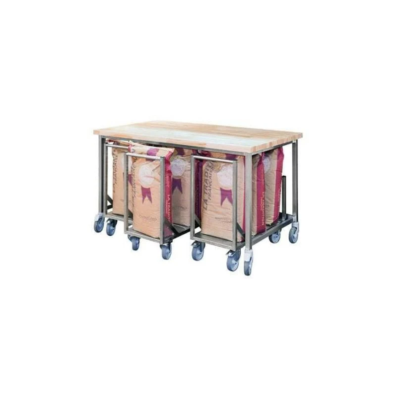 Table de Boulangerie sur roulette avec 4 chariots porte-sacs farine - L 2000 mm