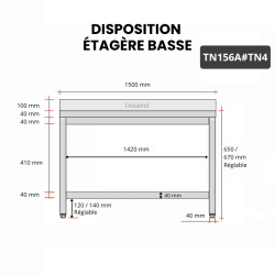 Table de travail soubassement adossée inox - 1200 x 600 x 660/680 mm - Goldinox