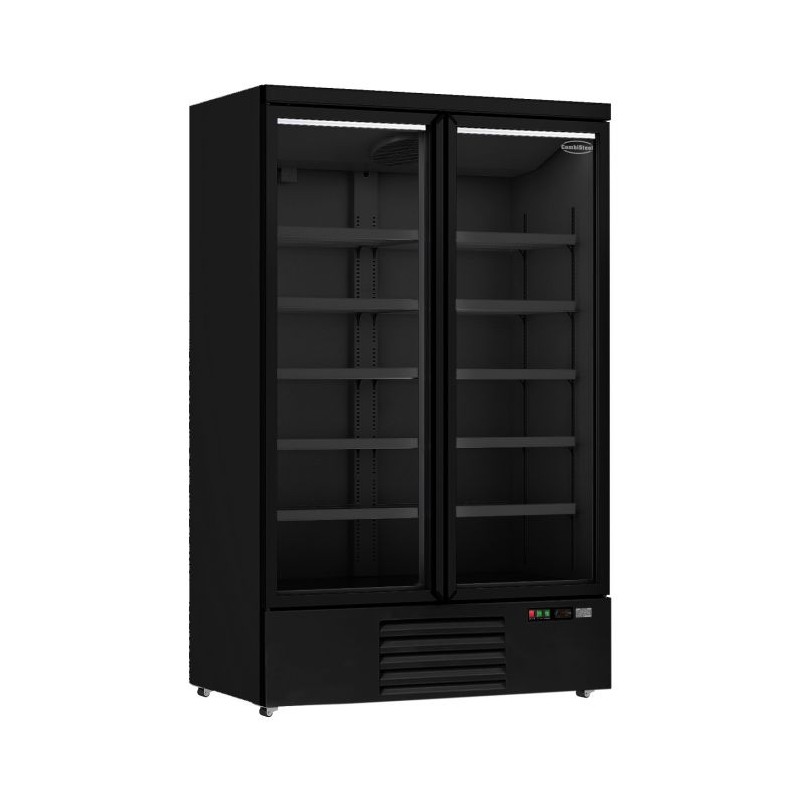 Armoire réfrigérée full black dotée de 2 portes vitrées battantes pour une capacité de 1000 litres.