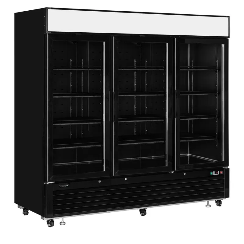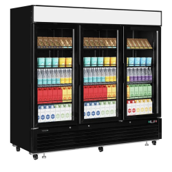 Vitrine murale de supermarché full black avec canopy - 2 portes battantes - T° +1 à 8 - °C - 1108 litres