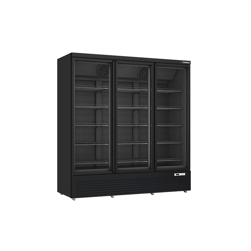 Armoire réfrigérée full black dotée de 3 portes vitrées battantes pour une capacité de 1563 litres.